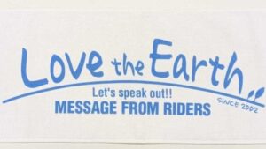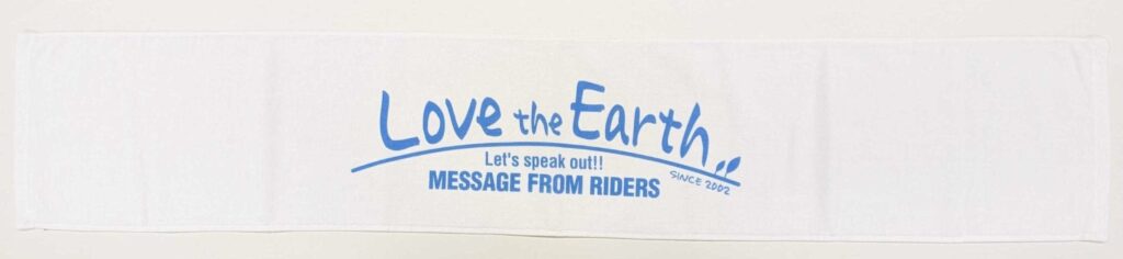 センターに「Love the Earth」のロゴが入った、長さ120cmのマフラータオルが新登場します。